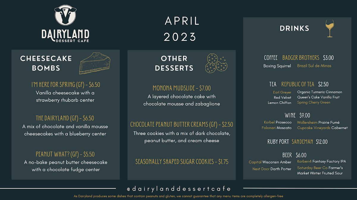 Dairyland Dessert Cafe isn’t just a café; it’s a delightful escape into the world of sweet sensations that embrace the tastes of Wisconsin. Whether you're stopping by after dinner or making it a special destination, this café is sure to leave you with a smile and a full heart. So gather your friends or enjoy a peaceful moment by yourself, and come treat yourself to the irresistible arrays of desserts waiting just for you!
