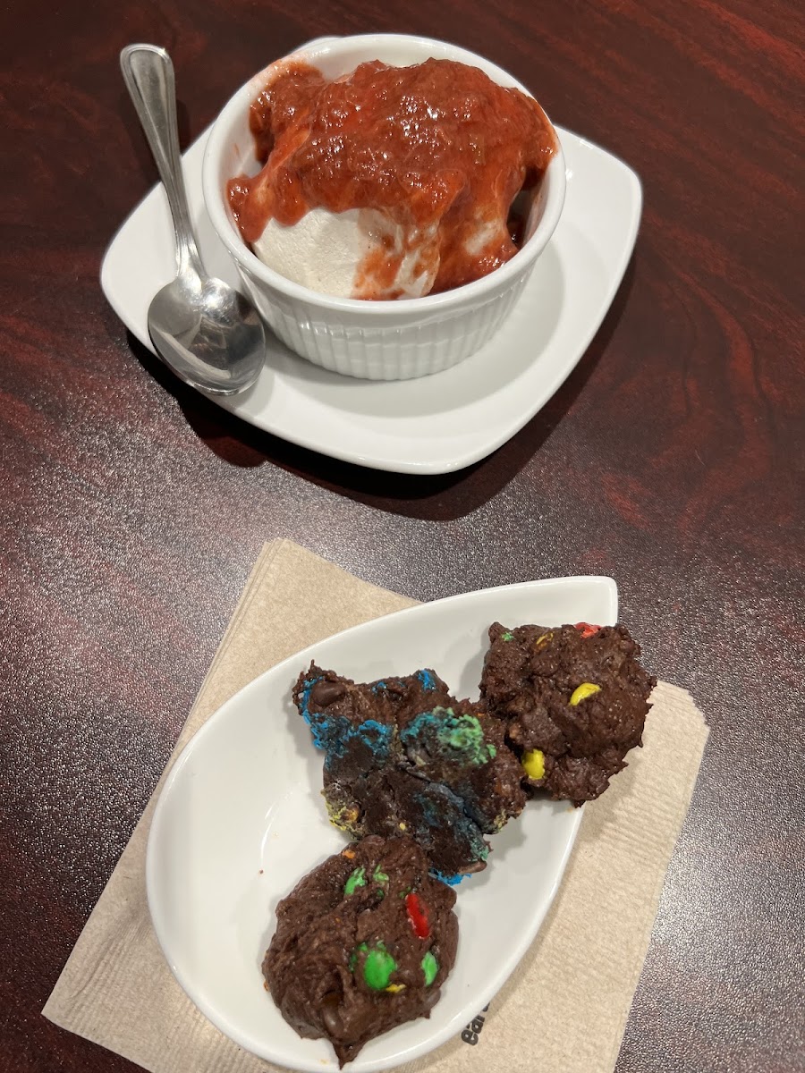 But the offerings don’t stop there! The Ice Cream Cake, layered with vanilla or mint ice cream, Oreo crumbs, and fudge, is a refreshing delight at $7.00. For those seeking a light, sugar-free option, the Sugar-Free Chocolate Mousse is both fluffy and creamy, a guilt-free dessert at $5.50. Each bite of the Peach Kuchen showcases a luscious German peach cake topped with cream custard, priced at $6.50, while the Apple Crisp with local warm apples and oat streusel topping is a heartwarming classic available for just $5.50. Want to indulge without the weight gain? Try the gluten-sensitive Chocolate Peanut Butter Creams or the Protein Bites that are both easy on the stomach and the pocket.